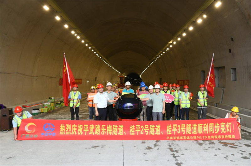 “10、9、8、7......,啟動送電!”隨著送電指令傳出,平武路樂梅隧道、桂平2號隧道、桂平3號隧道順利同步亮燈,平武路機電項目部歷經15個晝夜的奮戰,圓滿完成三座隧道同步通電亮燈的攻堅任務。作為平武路隧道機電施工的“首件工程”,此次順利通電,標志著平武路在實現年底通車總目標的征程上又邁出了重要的一步。