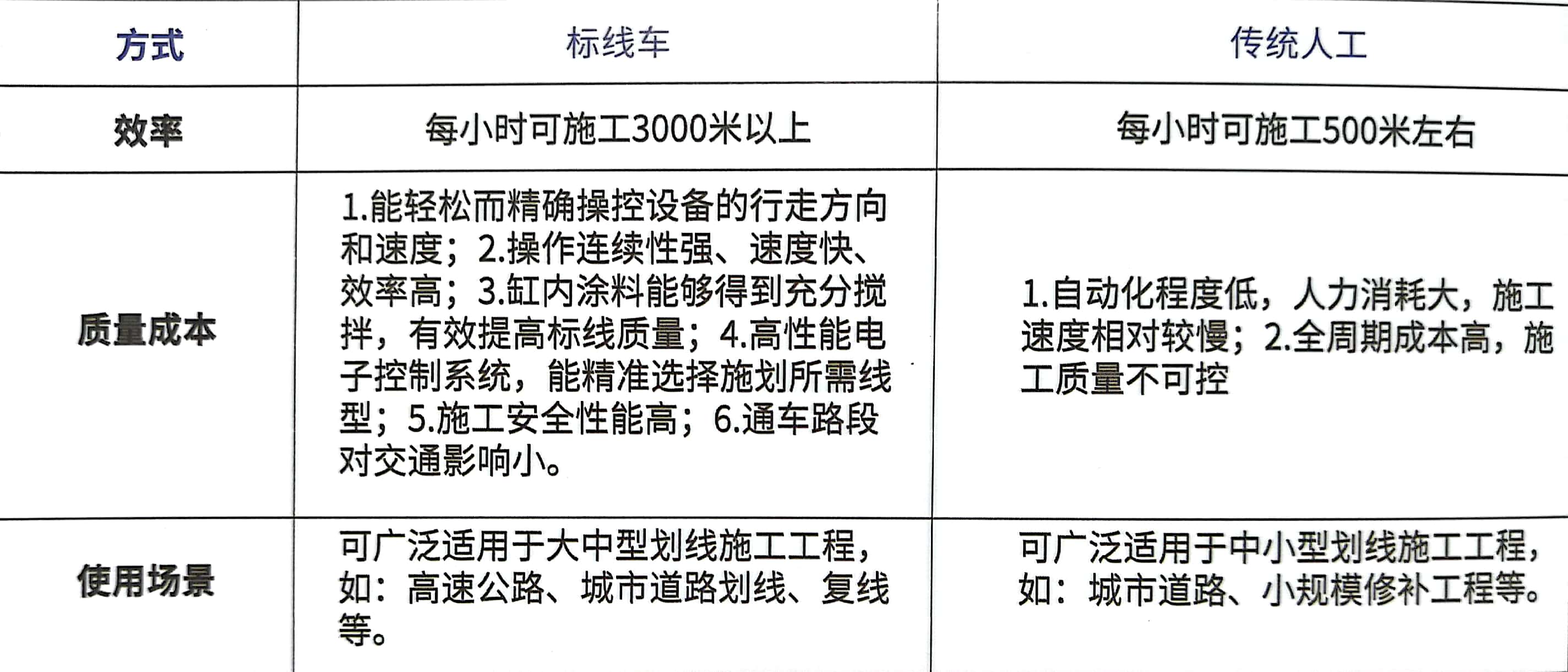 全自動熱熔標線機廣泛適用于大中型劃線施工工程,如高速公路、城市道路劃線等,智能化、自動化程度高,每小時可施工3000米以上,極大程度提升了標線施工的規范性、安全性和高效性。設備可以使用各種標線系統的涂料,可噴涂、可刮涂雙組份膠體涂料和可刮涂熱塑性材料。每日產出量高達6000平方米,智能化控制可一鍵切換:結構標線、普通標線、雙線及虛線施劃,內置的電控系統保證項目段作業標線品質穩定一致,熱油導熱料倉出料恒溫,保證熱熔涂料溫度均勻合理,全自動化操作只需一人即可輕松操作設備,施工效率為人工繪制的6倍,大大降低施工成本。