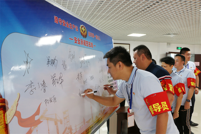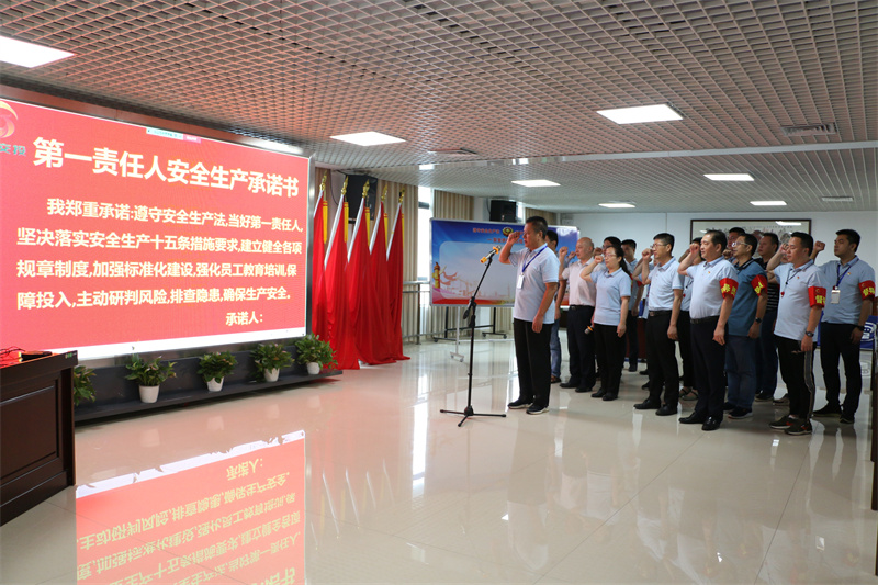 “我鄭重承諾,遵守安全生產法,當好第一責任人,堅決落實安全生產十五條措施要求……”會上,機械院黨委書記、董事長王吉才帶領全體人員作“第一責任人安全生產承諾”,公司領導班子成員為各直屬企業、中心,公司各部門主要負責人頒發紅袖章、安全哨子,簽署安全生產承諾,筑牢安全發展理念,落實安全生產責任,營造出濃厚的安全文化氛圍。