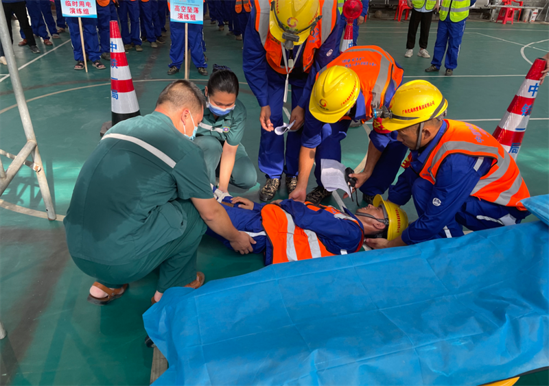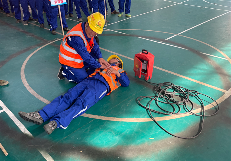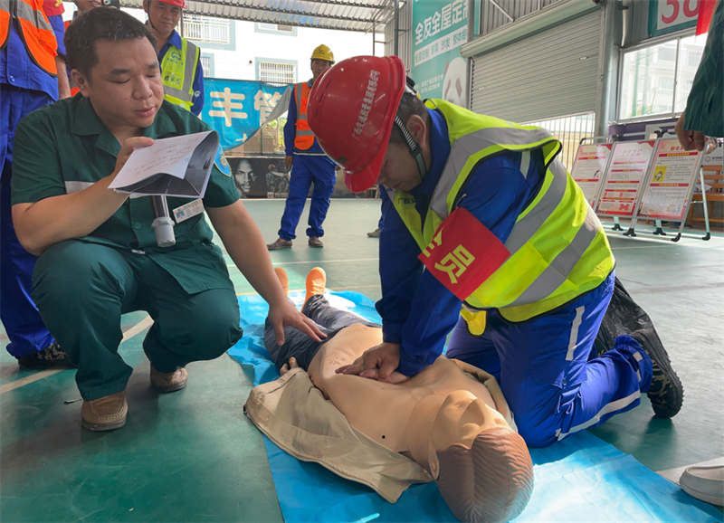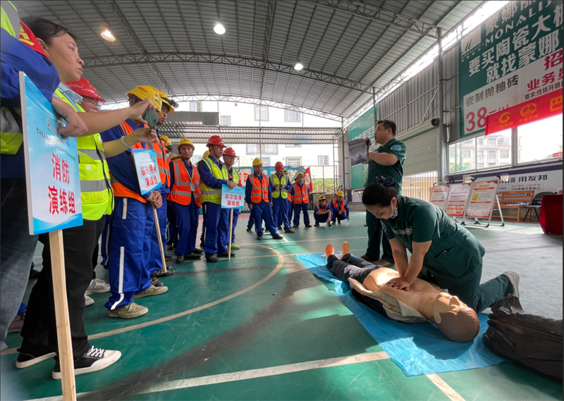 活動(dòng)現(xiàn)場(chǎng),項(xiàng)目部安全總監(jiān)對(duì)綜合應(yīng)急救援演練方案進(jìn)行了詳細(xì)的講解。參訓(xùn)人員分組對(duì)施工中常見(jiàn)的觸電、高處墜落應(yīng)急救援、觸電事故應(yīng)急救援、各類(lèi)消防器材的使用進(jìn)行了演練。醫(yī)護(hù)人員現(xiàn)場(chǎng)示范了中暑急救、胸外擠壓急救措施、人工呼吸方法、骨傷綁扎固定等應(yīng)急救援措施。通過(guò)形象生動(dòng)地講解示范和實(shí)踐演練讓參訓(xùn)人員深刻理解應(yīng)急救援知識(shí),掌握急救措施,提升事故防范處理能力,有效防范安全事故發(fā)生。