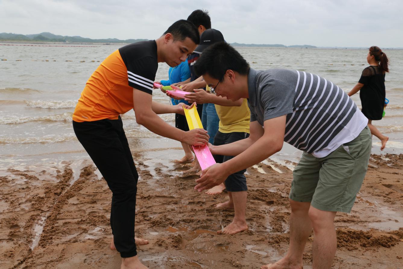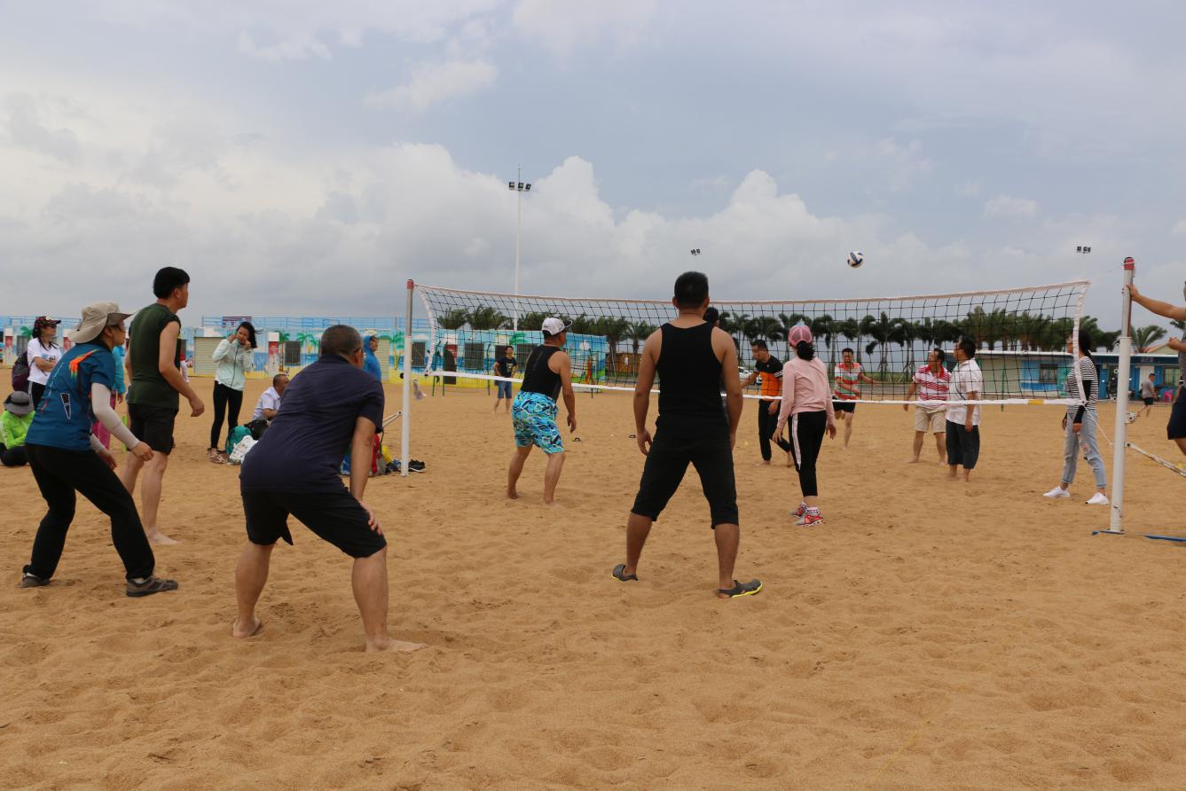 拓展活動分為沙灘排球、兩人三足、盛水接力等3個內(nèi)容,旨在鍛煉員工的身體素質(zhì),增強(qiáng)員工對團(tuán)隊的參與意識,促進(jìn)員工之間的溝通交流。2017年世界沙灘排球巡回賽在茅尾海沙灘激情開賽,所以我們的第一個拓展活動內(nèi)容當(dāng)然也先從我們院最有群眾基礎(chǔ)的傳統(tǒng)項目排球開始。在大伙的開場熱身之后,沙灘排球在歡呼聲中拉開了帷幕,場上的選手扣球廝殺,場外的小伙伴們也紛紛吶喊助威。從沙灘排球到后面的兩人三足、盛水接力活動,大家從剛開始的懼怕烈日有點(diǎn)畏手畏腳到后面的完全放開融入到團(tuán)隊活動中,從磨合到默契,發(fā)揚(yáng)同舟共濟(jì)的精神群策群力,無論是參與活動的隊員還是歡呼圍觀的群眾都是全情投入,現(xiàn)場的氣氛和沙灘上的熱浪一樣熱火朝天,圓滿達(dá)成素質(zhì)拓展培訓(xùn)活動的預(yù)期目標(biāo)。