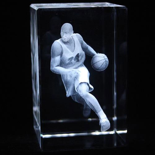 在水晶、玻璃等透明材料內雕刻平面或三維立體圖案。